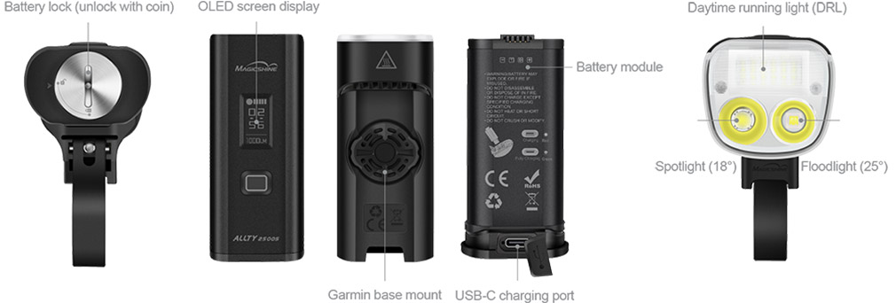 ALLTY 2500s nabízí výkon až 2500 lumen s USB dobíjecí baterií o velké kapacitě 7000mAh. Předností kompaktní ALLTY je možnost okamžité výměny baterie uživatelem, nebo i doplňkový reflektor DRL (Daytime Run Light), který je ideální pro denní svícení. Nový model je možné plně ovládat bezdrátovým dálkovým ovladačem a detailně konfigurovat nastavení režimů světla přes mobilní aplikaci.