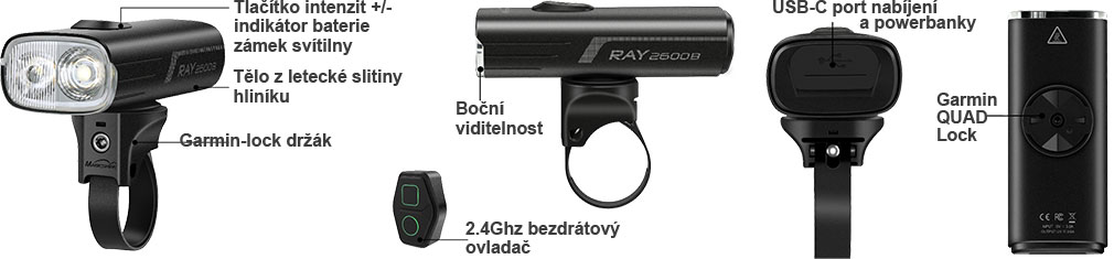 RAY 2600B je nejvýkonnější model řady RAY. Nabízí výkon až 2600 lumen s napájením baterií o velké kapacitě 6700mAh a disponuje optikou s Dual Beam reflektorem. Nové aktualizované modely Ray"B" mají nově možnost konfigurace funkcí přes APP v mobilním telefonu a součástí balení je bezdrátové dálkové ovládání na řídítka.