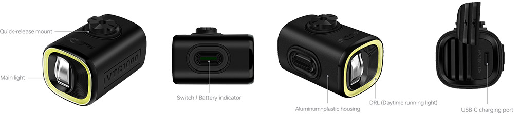 VTG 1000 je unikátní svítilna, navržená pro připevnění na přední část skládacích kol nebo koloběžek. Nabízí výkon až 1000 reálných lumen s napájením na interní USB-C dobíjecí baterii o kapacitě 2200mAh. Propracovaná optika nabízí dva nezávisle ovládané reflektory – jeden pro denní svícení a hlavní světlo s technologií GentleBeam™ zcela eliminující oslnění ostatních účastníků provozu. Magicshine VTG 1000 je ideální přední světlo pro skládací kola Brompton nebo koloběžky, pokud hledáte špičkové osvětlení s dálkovým ovládáním a neoslňujícím režimem.